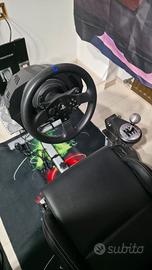 Vendo per inutilizzo postazione guida completa in ottime condizioni. Playseat regolabile anche con aggiunta di seatslider (scorrimento sedile) supporto cambio e cambio ad H, pedaliera modello Pro per un maggior feeling e regolazione sui pedali (volendo ho anche quella originale in aggiunta), volante Thrustmaster T300 rs. Adatta sia a pc sia a console. Possibilità di aiutarvi con il trasporto se per brevi tratti rispetto alla mia posizione.