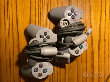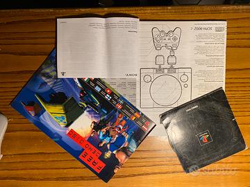 PlayStation 1 in ottime condizioni con 2 controller (ad uno manca la levetta sx), memory card, cavi e libretto istruzioni con demo disk