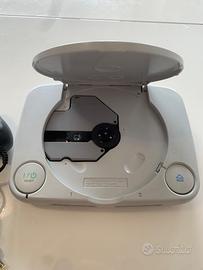 Sony Playstation 1 con cavo di alimentazione e cavo audio/video, con mod. e vari giochi. La Playstation è testata. La scocca presenta normali segni di usura e dei graffi come in foto. * Tekken 3 non è stato testato * i joystick non sono inclusi