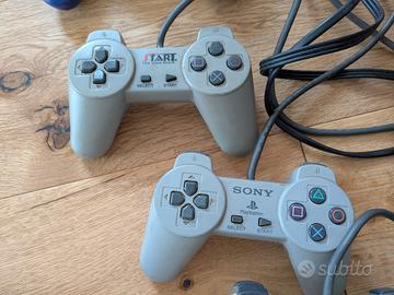 PS1 funzionante con memoria originale, modifica per giochi non originali e 5 controller tra originali e non. Con cavetteria originale