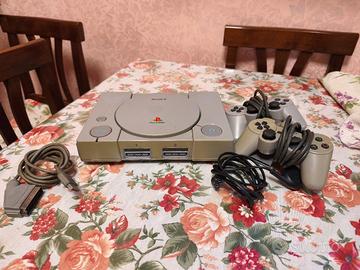 Console per videogiochi classica. - Modello PlayStation 1. - Colore beige.LA CONSOLE SI ACCENDE ESCE ANCHE L'IMMAGINE MAI PROVATA PERCHÉ GIOCO PS1 NON CE LO. 2 JOYSTICK NON FUNZIONANTI con cavi SENZA SCATOLA .