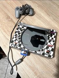 console Sony PlayStation 1 modello originale (SCPH-100x), modificata per leggere anche giochi masterizzati (backup).