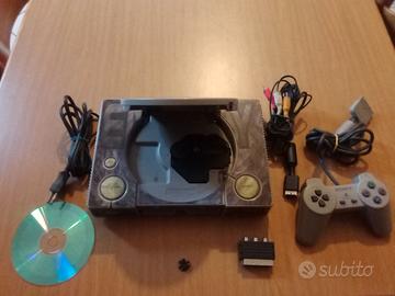 Console PlayStation 1 modello SCPH-7502. - Console di colore grigio. - Include il gioco Ace Combat III. - Console e cavi - Controller Originale - il Supporto disco viene via insieme al disco ma lo si rimette senza problemi - Ma non Compromette il Normale Funzionamento - Perfettamente funzionante - Condizioni Estetiche Piu che Buone