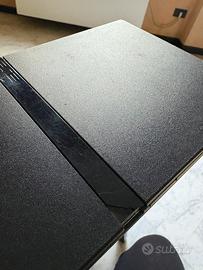 PlayStation 2 con tutti i suoi cavi. Angolino rotto della striscia centrale, più qualche graffietto e segno del tempo. Nell’insieme si trova in buono stato. Si vende con joystick nero originale (teoricamente funzionante) che presenta un piccolo taglio sul filo dovuto all’arrotolamento dello stesso intorno al joystick (foto). Nel lotto ci sono 8 giochi, i cui cd sono tutti in buono stato. Seguono condizioni specifici dei giochi:
