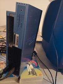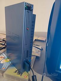 playstation 2 aqua colore azzurro funzionante joystick nero e mancante di sportellino posteriore..presenti cavi e memori card azzurro trasparente..condizioni come da foto.