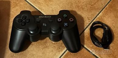Console PlayStation 3 Slim di colore argento, completa di controller e cavi.