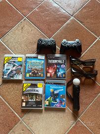 Play Station 3 slim nera, con 2 joystick, 4 giochi.