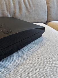 Sony PlayStation3 Slim modello CECH-2004A con cavo di alimentazione. La console è stata testata ed è perfettamente funzionante. la ventola gira bene senza fare rumore. Unico piccolo difetto riguarda l'inserimento del disco, il quale deve essere leggermente accompagnato fino in fondo, mentre l'estrazione avviene senza problemi.