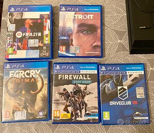 Vendo sia in blocco che separatamente: • PS4 capacità 1 Tb 150€ comprensiva di: - cavo alimentazione - Cavo HDMI - 2 joypad - cavo ricarica joypad - 2 videogiochi (Farcry e Detroit, Fifa è in omaggio) • AIM Controller 50€ (+gioco Firewall) • 2 PS Move Motion Controller 50€ Non accetto scambi, ma offerte ragionevoli ✌️