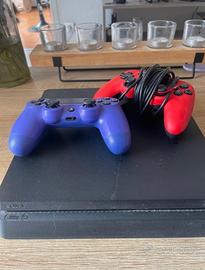 Console Playstation 4 con 2 controller blu e rossi inclusi
