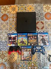 Caricatore dei joystick, giochi (FIFA 21, GTA5, NBA 2K 19, Formula 1 2017 special e Edition e un gioco per bambini) la play ha 500gb di memoria prezzo leggermente trattabile, ma poco visto che la play è completa di tutto. nella foto dove la play è accesa il gioco in questione è the last of us ma l’ho già venduto se volete altre foto dove la play accesa contattare in privato possibilita di ritoro a mano presso Cagliari.i controller bon soho originali ms funzionano impeccabilmente se si vuole si possobo vedere dal vivo