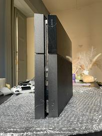 Console Sony Playstation 4 primo modello con qualche segno di usura ma perfettamente funzionante, con controller funzionante e cuffie (usurate dal tempo e con un pezzo di plastica mancante sul microfono ma anche queste perfettamente funzionanti) + 2 giochi: Call of Duty Black Ops III e The Evil Within