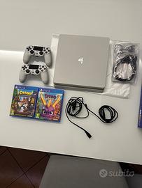 Vendo per inutilizzo, usata pochissimo come nuova, con scatola originale, include due controller wireless DUASHOCK 4, 1 auricolare mono 2 giochi ( Spyro Reignited Trilogy e Crash Bandicoot N Sane Trilogy ), cavo di alimentazione, cavetto USB, cavo HDMI e materiale informativo.
