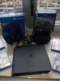 Playstation 4 slim 500gb joystick revolution pro controller 3 cuffie gold wirelless headset 4 giochi.