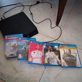 vendo PlayStation 4 slim usata in buonissime condizioni con 5 giochi come in foto i e 1 joystick da riparare