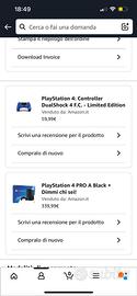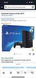 PlayStation 4 PRO A Black più controller limited edition CL. Acquistata su amazon novembre 2017. Utilzzata pochissimo per circa un anno poi rimasta ferma semza mai esseere accesa fino ad oggi. Vendo per inutilizzo. Stato ottimo.