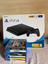 Vendo Playstation 4, in scatola originale, con due joystick e 8 giochi ( Fifa 18 - Fifa 19 - Fifa 20 - Rocket league *ultimate edition* - Fishing sim world - Valentino Rossi - Gta5). Tutto in buone condizioni, unico difetto che il joystick tutto nero funziona solamente se attaccato al cavo carica batterie della playstation. Tutti i cavi necessari per il funzionamento della playstation sono all’interno della scatola. Prezzo POCO trattabile. POSSIEDO ANCHE VOLANTE E PEDALIERA PER POTER GIOCARE AD ASSETTO CORSA IN MODO PIÙ REALISTICO (vendo a parte).