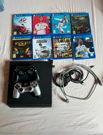Vendo Playstation 4 da 1 terabyte (1TB), in scatola originale, con due joystick e 8 giochi ( Fifa 18 - Fifa 19 - Fifa 20 - Rocket league *ultimate edition* - Fishing sim world - Valentino Rossi - Gta5). Tutto in buone condizioni, unico difetto che il joystick tutto nero funziona solamente se attaccato al cavo carica batterie della playstation. Tutti i cavi necessari per il funzionamento della playstation sono all’interno della scatola.POSSIEDO ANCHE VOLANTE E PEDALIERA PER POTER GIOCARE AD ASSETTO CORSA IN MODO PIÙ REALISTICO (vendo a parte).