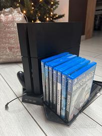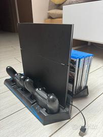 Vendo PlayStation 4 Slim, usata pochissimo con due controller e BASE VERTICALE VERTICAL STAND PS4 PRO RICARICA CONTROLLER VENTOLA PLAYSTATION 4 in 1