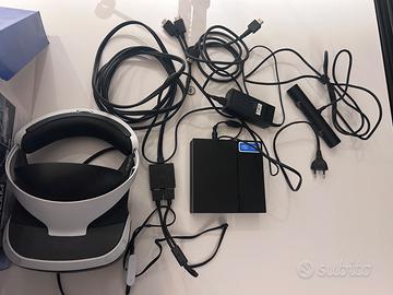 Vendo PS4 slim con visore VR incluso . Allego 2 controller dualshock perfettamente funzionanti più uno (trasparente ) con malfunzionamento tasto LR ma utilizzabile o Comunque sfruttabile per ricambi . PS4 slim senza scatola , tutto il Ps VR invece con manuali , imballi e scatola originale .