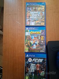 vendo playstation 4 slim marca sony, tenuta benissimo . do anche i giochi come da foto come fc26, crash e gta. compresi due joystick no affaristi !