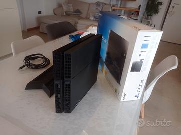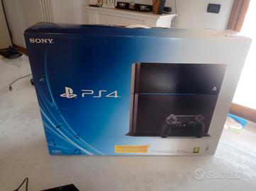 Console PlayStation 4 con memoria di 500 GB, in perfette condizioni, perfettamente funzionante, dotata dei suoi cavi in dotazione, due joystick originali Sony, è una base di ricarica completa di ventola per il raffreddamento durante l'utilizzo della console. La PlayStation è perfetta completa di scatola originale in perfette condizioni.