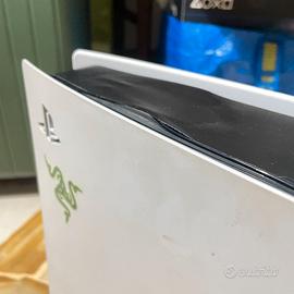 PS5 con doppio controller e base di ricarica originale, tutto funziona bene. Solo un piccolo difetto estetico sopra causato dal calore.