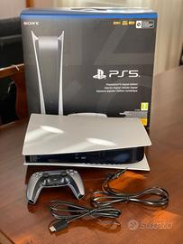 Vendo ps5 fat modello digital in perfette condizioni per passaggio a ps5 pro. La console è perfettamente funzionante e non presenta graffi o ammaccature. Vendesi completo di cavi e controller che come si può notare dalle foto è in colorazione silver in quanto, a causa di un problema con gli analogici, ho dovuto comprarne un altro.
