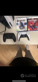 La play è praticamente nuova e stata usata solo un mese e poi messa dentro lo scatolo c’è il controller bianco e un altro controller nero con anche la scatola originale sia della playbe anche del controller in piu ci sono il cd di spiderman 2 che ancora aveva la pellicola ( è stato aperto per fare la foto) e anche fifa 23 nuovo piu due cavi originali usb-c.