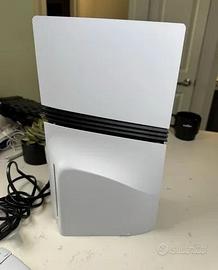 PS5 Pro 2 Tera con lettore disco, un controller, la scatola e i cavi. La console funziona molto bene, senza difetti e senza alcun problema.