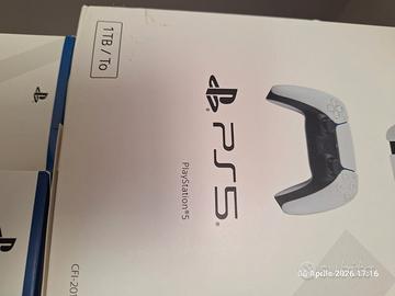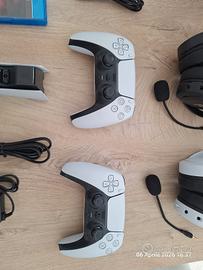 PlayStation 5 (PS5) + accessori (completa di tutto come in foto). Console Sony PlayStation 5 1 Terabyte (modello con lettore disco), in condizioni estetiche e funzionali perfette, usata pochissimo. Console PS5 completa di base originale e cavetteria (Alimentazione, HDMI 2.1, USB-C). Due (2) Controller DualSense originali e con batteria in ottimo stato. Cuffie Gaming Playstation con cavo, perfette per l'audio 3D. Base caricatore per due joystick completa di alimentatore. Incluso Call of Duty Modern Warfare 3. Tutti gli articoli sono nel loro imballo originale. La console è perfettamente mantenuta, è stata tenuta in ambiente non fumatori, regolarmente pulita e non presenta alcun segno di usura.