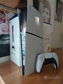 vendo PlayStation 5 slim Digital 1 tera con joypad praticamente nuova usata 4 volte contata e mai più usata, non c'è la ricevuta di acquisto consegna a mano, zona Torino.