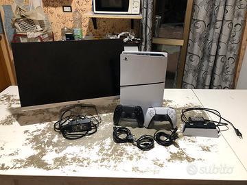 Vendo playstation 5 slim digital + 2 dualsense + base appoggio ricarica dualsense + caricatore originale dualsense + monitor HP