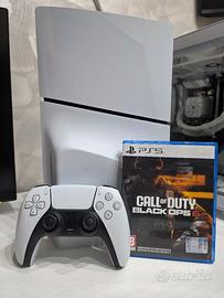 Vendo Sony Playstation 5 versione disco, bianca, 1 dualsense presente con cavo di ricarica, 500 gb di archiviazione. All'interno è presente il disco di un gioco (call of duty Black ops 6). Motivazione: initilizzo, utilizzata una decina di volte.