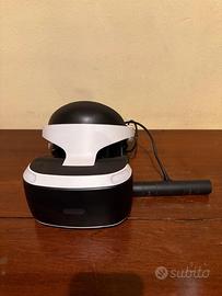 PlayStation VR in buone condizioni completo di PlayStation Camera, processore esterno, connettori e auricolari. Compatibile con PS4 e PS5.