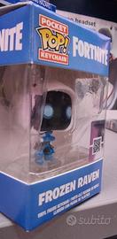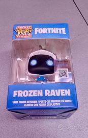 L'oggetto nell'immagine è un portachiavi Pocket Pop! Keychain di Funko, raffigurante il personaggio Frozen Raven dal videogioco Fortnite.