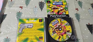 vendo videogioco per play station 1 ps1 prima stampa point blank testato e perfettamente funzionante completo di manuale custodia integra disco perfetto.