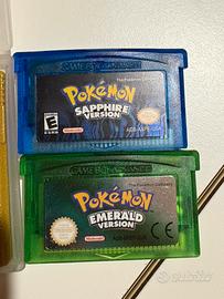 Come da annuncio vendo :pokemon oro 40€,versione italiana ,pokemon smeraldo 35 € versione inglese ,pokemon zaffiro 30€versione inglese ,i giochi sono tutti in conzioni perfette ,scambio a mano ,non spedisco ,sconto se acquistati in blocco ,per ogni dubbio o chiarimento sono a disposizione .