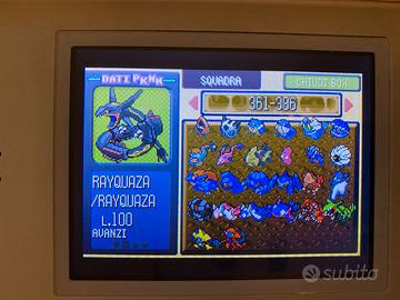 VENDO POKEMON SMERALDO CON POKEDEX COMPLETATO DI CUI TUTTI POKEMON CROMATICI (shiny) —TUTTI I POKEMON SONO LEGIT —TUTTI I POKEMON POSSONO ESSERE SCAMBIATI —-E UN SALVATAGGIO GIOCATO PER ANNI E ANNI, DOVE SONO STATI SCAMBIATI O CERCATI TUTTI I POKEMON il gioco dispone anche dei biglietti evento lo zaino é pieno di ogni item (pozioni masterball caramelle rare ecc) anche loro ottenuti tramite scambi o comprati nel gioco INOLTRE CONTIENE I 4 BIGLIETTI EVENTO!!! - BIGLIETTO AURORA - BIGLIETTO EONE - BIGLIETTO METEORITE - BIGLIETTO VECCHIA NAVE LA CARTUCCIA É IN CONDIZIONI ESTETICHE VERAMENTE ECCELLENTI E OVVIAMENTE É ORIGINALE, IL GIOCO NON É STATO MODIFICATO vendo al prezzo di 85€+5€ di eventuale spedizione il gioco é compatibile con le console: Game Boy Advance, Game Boy Advance SP, Nintendo DS Lite GIOCO SIMILE A: ZAFFIRO RUBINO ROSSO FUOCO VERDE FOGLIA