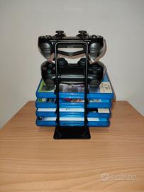 Porta joystick e videogiochi fisici in disco in alluminio nero.