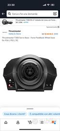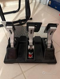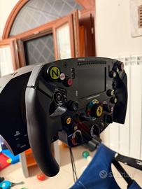 Seduta playseat ps blu richiudibile, servo thrustmaster T300 (ps4-ps5 e pc) , volante ferrari f1 carbonio replica con chrono paddle aggiuntivi , pedaliera TLCM con cella di carico e molle si ricambio per regolazione pedali.