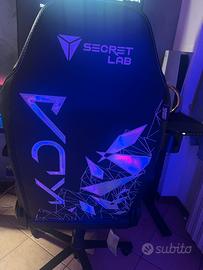 Colonnina passa cavi integrata, vassoio porta cavi integrale, supporto magnetico per cuffie, ancoraggi magnetici per cavi, tappetino Secret Lab magnetico MAG PAD, retroilluminazione Led Nanoleaf, pannello di controllo elettrico per alzare e abbassare la scrivania con tre modalità di memorizzazione. Utilizzata per giocare, praticamente nuova. Possibilità di offerta anche su schermo Samsung Galaxy ARK e sedia Secret Lab KDA edition ancora con cartellino e cuscino cervicale magnetico.