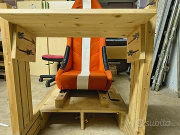 Postazione SIM Racing fatta in legno di abete. Può essere verniciata. Ha attacco volante e pedaliera completamente regolabile. Non Spedisco