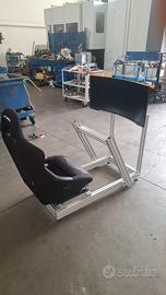 Costruita con passione e precisione, questa postazione Sim Racing è realizzata interamente con profilati in alluminio anodizzato Item (Tedesco!), gli stessi utilizzati nel mondo industriale per strutture professionali.