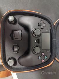 Pro controller, con scocca magnetica, possibilità di cambiare gli analogici, 4 palette nel dietro del controller che si possono togliere, possibilità di modifica corsa trigger, con custodia, con cavo lungo più di 1 m , usb e BT per PS4, USB per pc