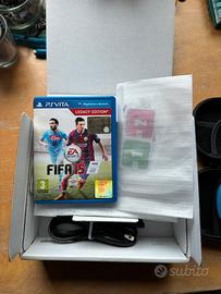 Vendo completa di scatole e cavo originale con Fifa 15, nessun graffio, pellicola anteriore e posteriore piu gommini di protezione su analogici. Attualmente modificata con App scaricabile da Internet per giocare a tutti i giochi gratis di PS1, PS2, PS3 , PSP, PSVita ecc ecc. Versione Asiatica (identica alla nostra europea ma cambia solo che nelle impostazioni per entrare al posto di usare la “X” si usa il “O”. Non spedisco