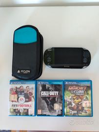 Ps Vita + 3 giochi, usata davvero poco, con custodia e cavo batteria originali, senza scatola, vendo per inutilizzo. Prezzo trattabile.