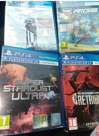 Causa doppio acquisto, scatola aperta solo per fare foto! Sì valutano offerte parziali. Vendo; - PSVR NUOVO, completo con anche la demo e con visore V2. - AIM controller (opzionale: se si acquista aumento del prezzo di 40€) - PS camera (v2) - cavo adattatore per PS5 - 2 move controller (v2) - 1 controller DualShock 4 per PS4 e PS5. - 1 controller originale PS5 - Stazione ricarica doppia per 2 Move controller. 2,7 giochi: -Firewall VR -MR4 VR -Wolfstain VR -DOOM VFR VR -Resident evil 7 biohazard VR -Minecraft VR -Farpoint VR -Robinson the Journey VR -Creed VR -The Walking Dead VR -Dirt Rally VR -Arizona Sunshine VR -Eve VR (server chiusi) -ATV VR -The Persistence VR -Ace Combat 7 VR -Squishies VR -Tekken7 VR - DriveClub VR -Iron Man VR -Battlezone VR -Boxe VR -Star Trek Crew VR -The Walking Dead Sinner & Saint Retribution VR -Star Wars Battlefront VR -Stardust VR -R.i.g.s. VR PSVR MAI usato! Solo i giochi pagati 295€! Disponibilità controller AIM con surplus di prezzo di 40€. Non trattabile.