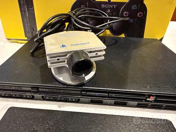 Vendo console PlayStation 2 Slim in confezione completa, con la telecamera EyeToy inclusa.