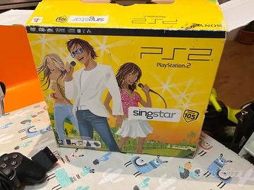 PS2 slim conpleta di cavi con controller scatola originale sing star con microfoni e libretti e gioco. Scatola PS2 interna originale.